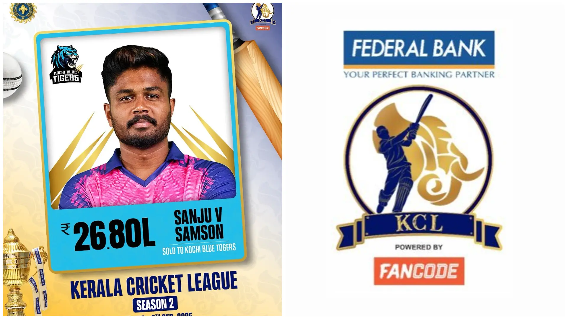 കേരളാ ക്രിക്കറ്റ് ലീഗിന്റെ രണ്ടാം സീസൺ ഓഗസ്റ്റ് 21 മുതൽ സെപ്റ്റംബർ 6 വരെയാണ് നിശ്ചയിച്ചിരിക്കുന്നത്. ശ്രീലങ്കൻ പര്യടനവും കെസിഎല്ലും ഒരേ സമയങ്ങളിൽ വരാൻ സാധ്യതയുണ്ട്. അങ്ങനെയങ്കിൽ സഞ്ജുവിന് കെസിഎല്ലിൽ കളിക്കാൻ കഴിയില്ല. കഴിഞ്ഞ കെസിഎൽ ലേലത്തിൽ 26.80 ലക്ഷം രൂപയ്ക്ക് ‘കൊച്ചി ബ്ലൂ ടൈഗേഴ്സ്’ ടീമാണ് സഞ്ജുവിനെ സ്വന്തമാക്കിയത്.ഇത് കെസിഎൽ ചരിത്രത്തിലെ ഏറ്റവും ഉയർന്ന ലേലത്തുകയായിരുന്നു.