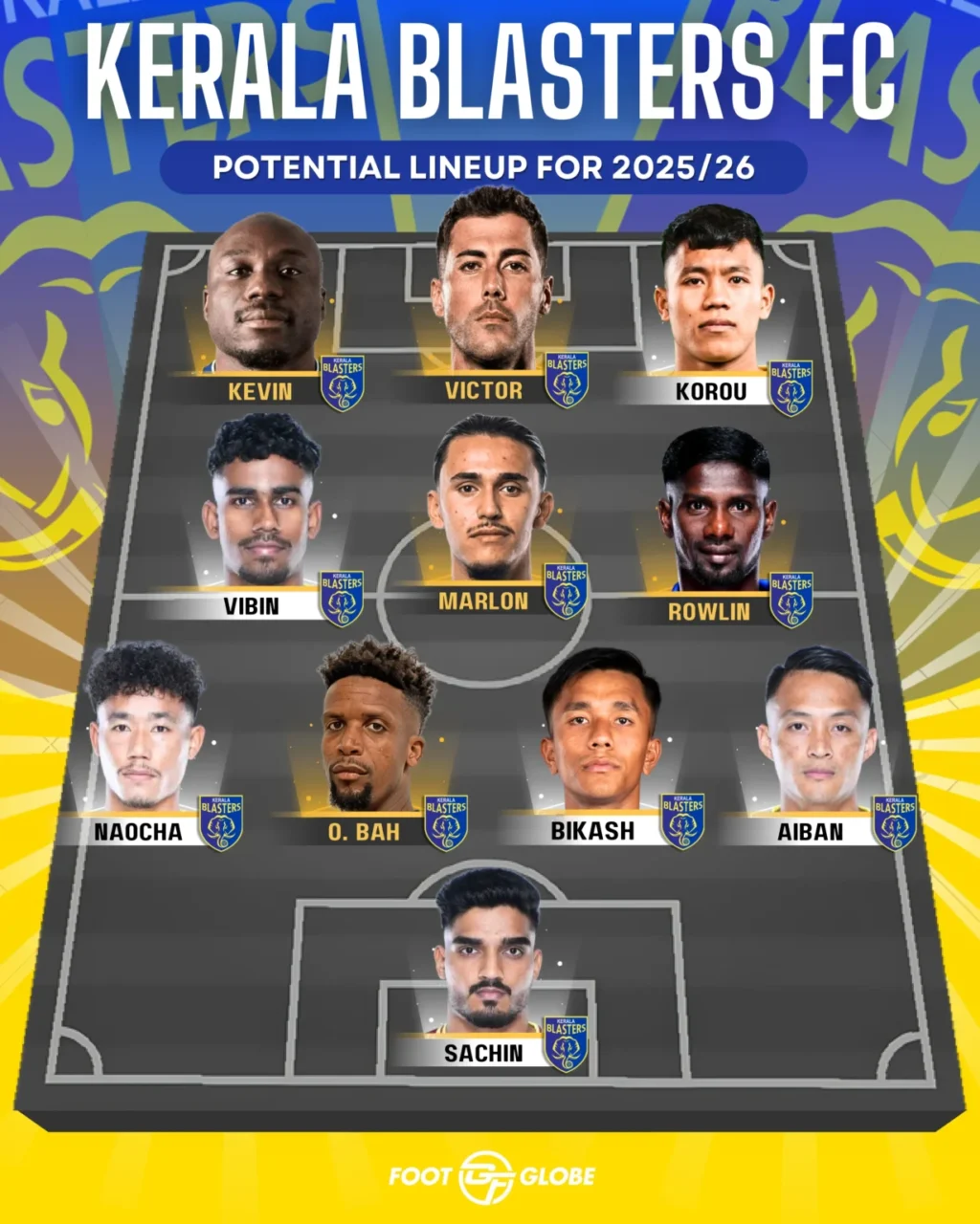 നമ്മുക്ക് ഇനി കേരള ബ്ലാസ്റ്റേഴ്സിന്റെ 2025/26 സീസണിലെ ഏറ്റവും മികച്ച പ്ലെയിങ് ഇലവൻ എങ്ങനെയായിരിക്കും പരിശോധിക്കാം. 4-2-3-1 എന്ന ഫോർമേഷനിൽ തന്നെയായിരിക്കും ഡേവിഡ് കറ്റാല ഐഎസ്എലിലും ലൈനെപ്പ് അണിനിരത്തുക. കേരള ബ്ലാസ്റ്റേഴ്സിന്റെ സാധ്യത ഇലവൻ ഇതാ….