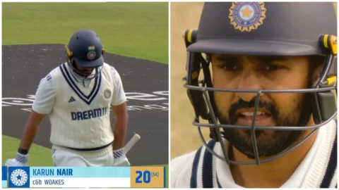 മത്സരത്തിലെ ആദ്യ ഇന്നിങ്സിൽ സംപൂജ്യനായി പുറത്തായ കരുൺ രണ്ടാം ഇന്നിങ്സിലും പ്രതീക്ഷയ്ക്കൊത്ത് ഉയർന്നില്ല. കേവലം 20 റൺസ് മാത്രമേ താരത്തിന് രണ്ടാം ഇന്നിങ്സിൽ നേടാനായുള്ളു.